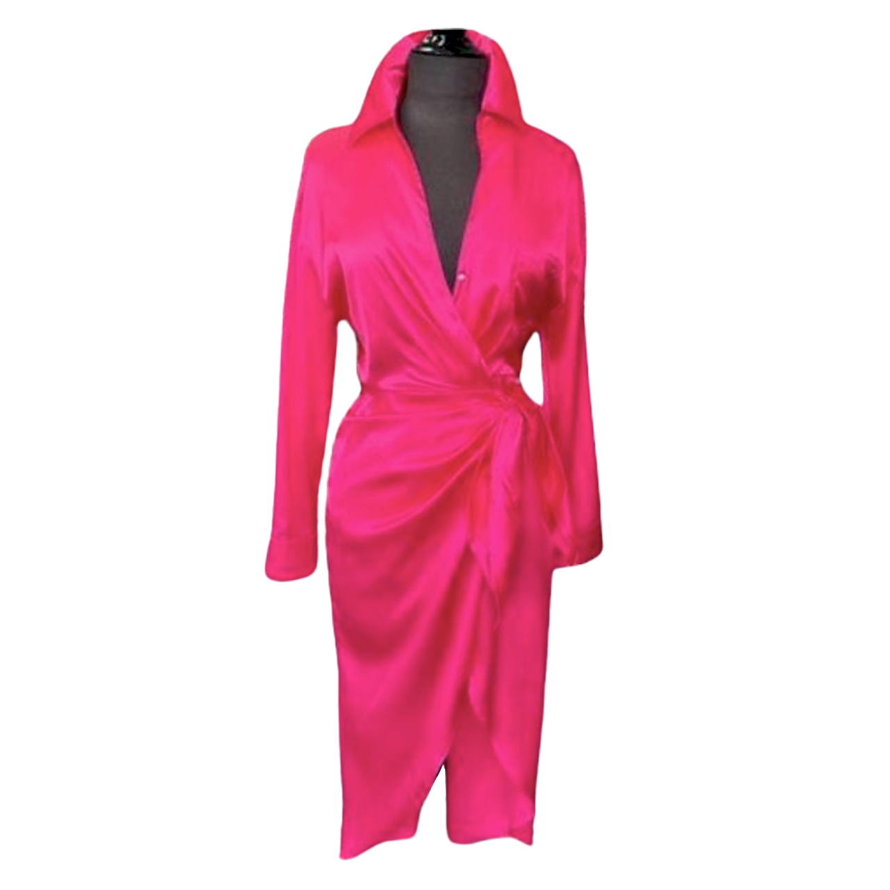 Feeling fabulous in this magenta silk dress! 💕✨ Super sexy with its open front and vibrant color, it's perfect for any occasion.