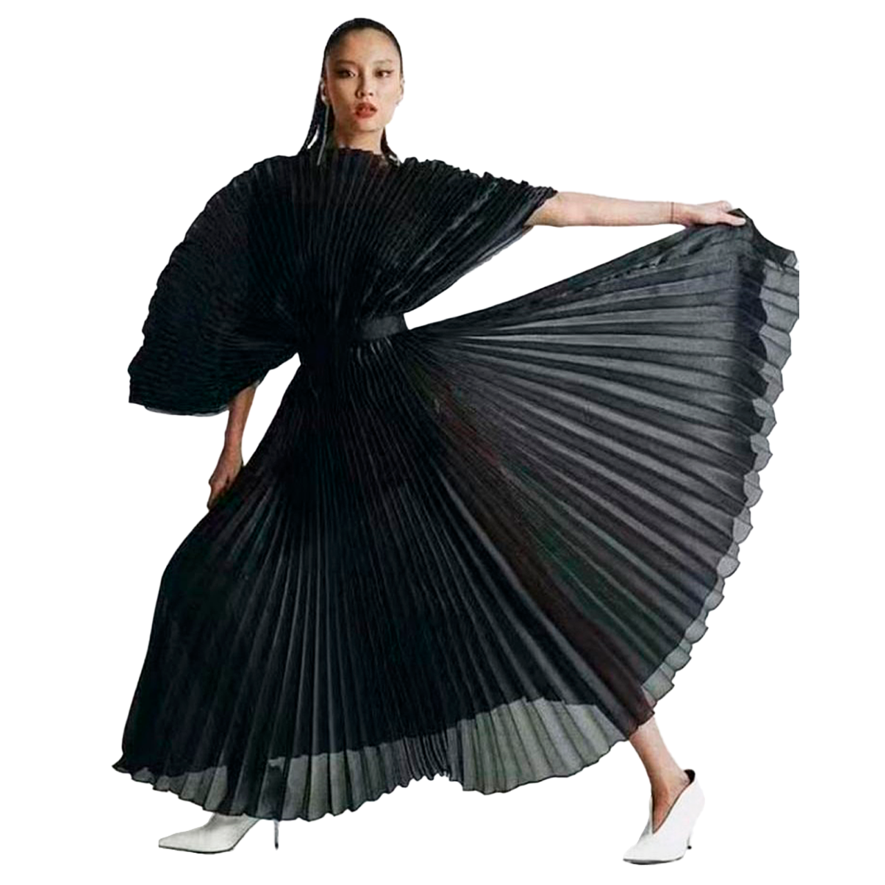 If you're looking for something totally different and bold, this dress is sure to make a statement. The combination of luxurious silk fabric, intricate pleating, and the dramatic black silk overlay on top creates a truly unique and eye-catching look. Whether it's a special event or a formal occasion, this dress is guaranteed to turn heads and make you feel extraordinary.