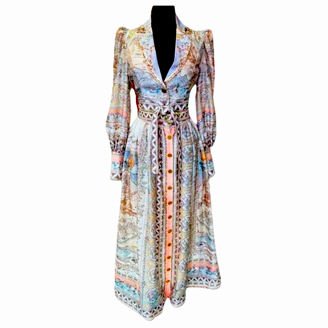 Imagine a stunning long dress crafted from luxurious silk, featuring a flattering v-neck and a button-down front adorned with a chic belt. The exquisite combination of powder pink and beige creates an elegant and timeless look, perfect for any special occasion. With its neutral tones and graceful silhouette, this dress exudes sophistication and beauty, making it a must-have for your wardrobe.