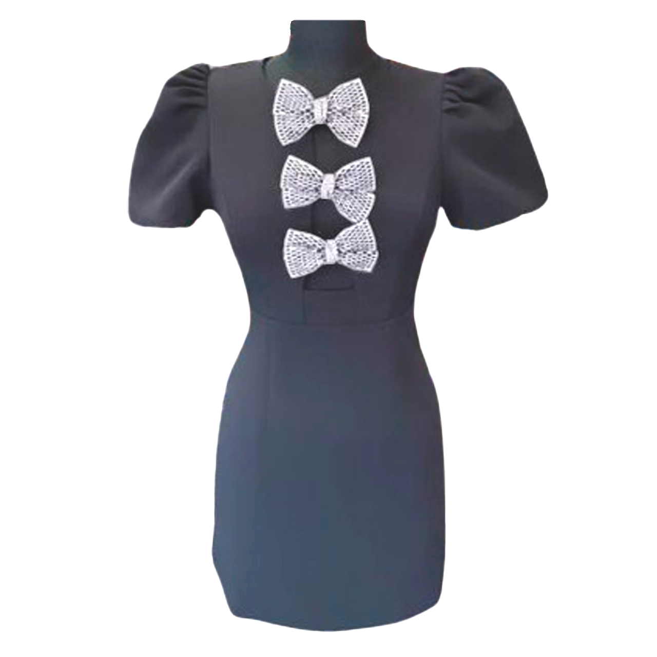 Introducing our stunning mini black dress adorned with exquisite Swarovski diamonds and charming bows in the front. This dress is the epitome of elegance and sophistication, perfect for any event where you want to make a lasting impression. The delicate diamonds catch the light beautifully, adding a touch of glamour, while the bows provide a playful yet refined detail. Ready to wear and designed to turn heads, this gorgeous dress is a must-have for your wardrobe