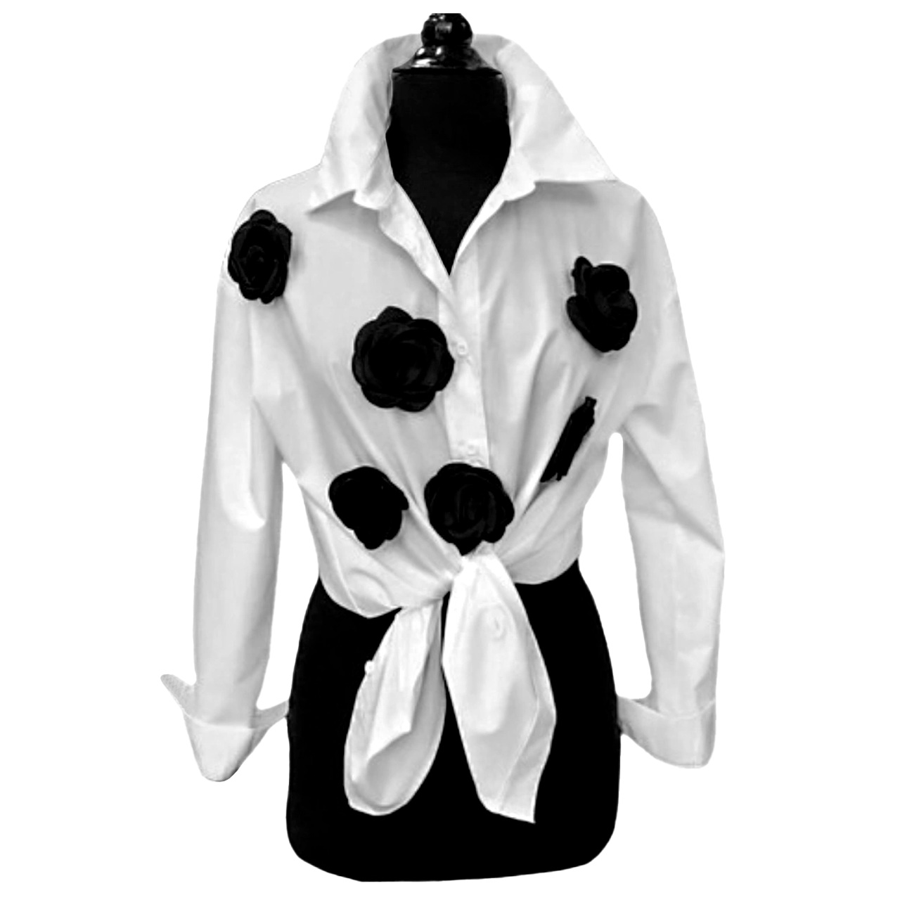 Discover the elegance of our beautiful bottom-down shirt exquisitely crafted in pure white with striking black accent flowers. This absolutely gorgeous piece is perfect for both work and evening outings. Made from 100% cotton, it offers unparalleled comfort and style, making it an amazing addition to your wardrobe.