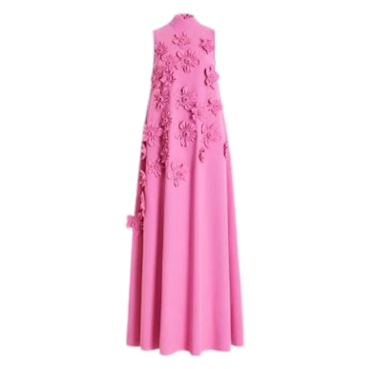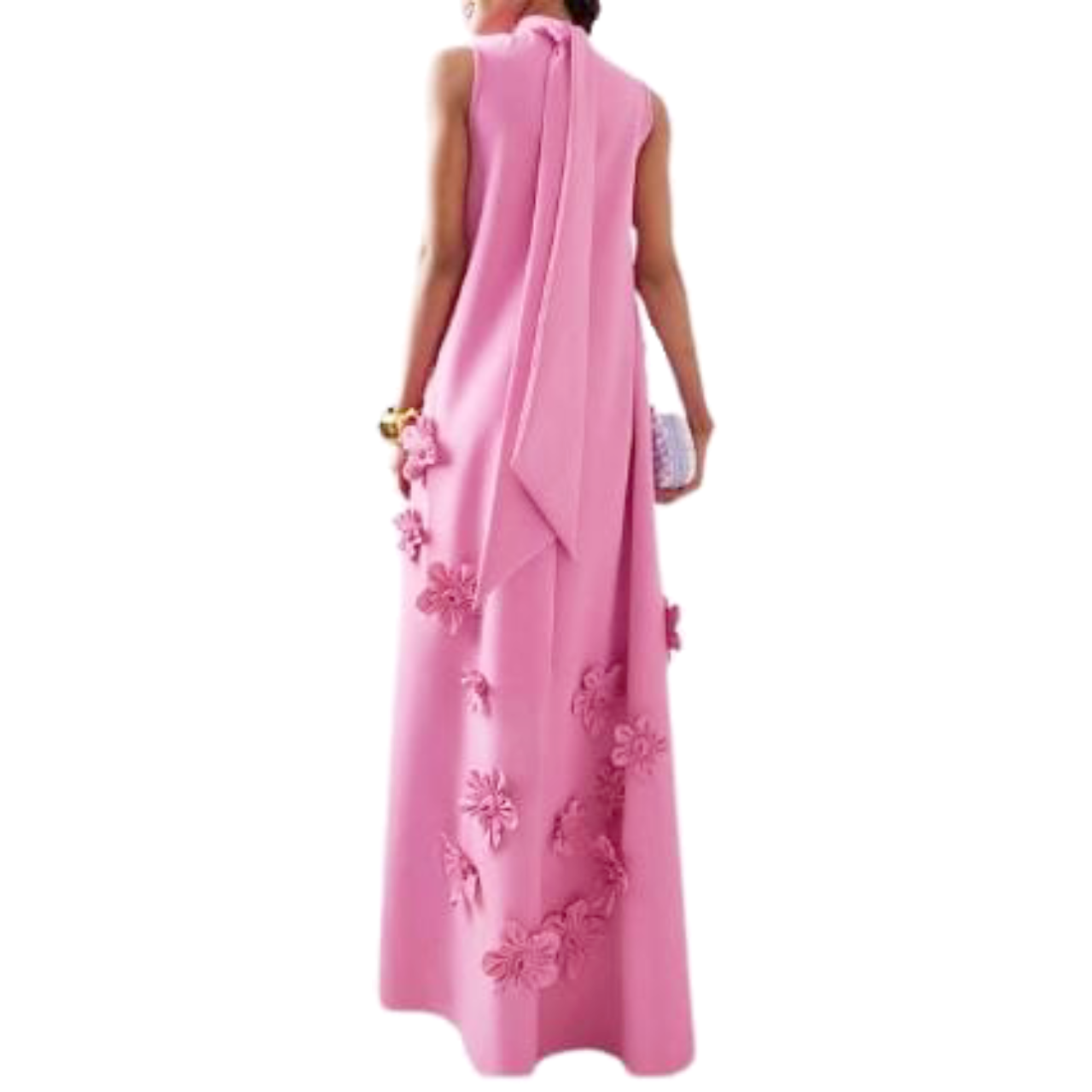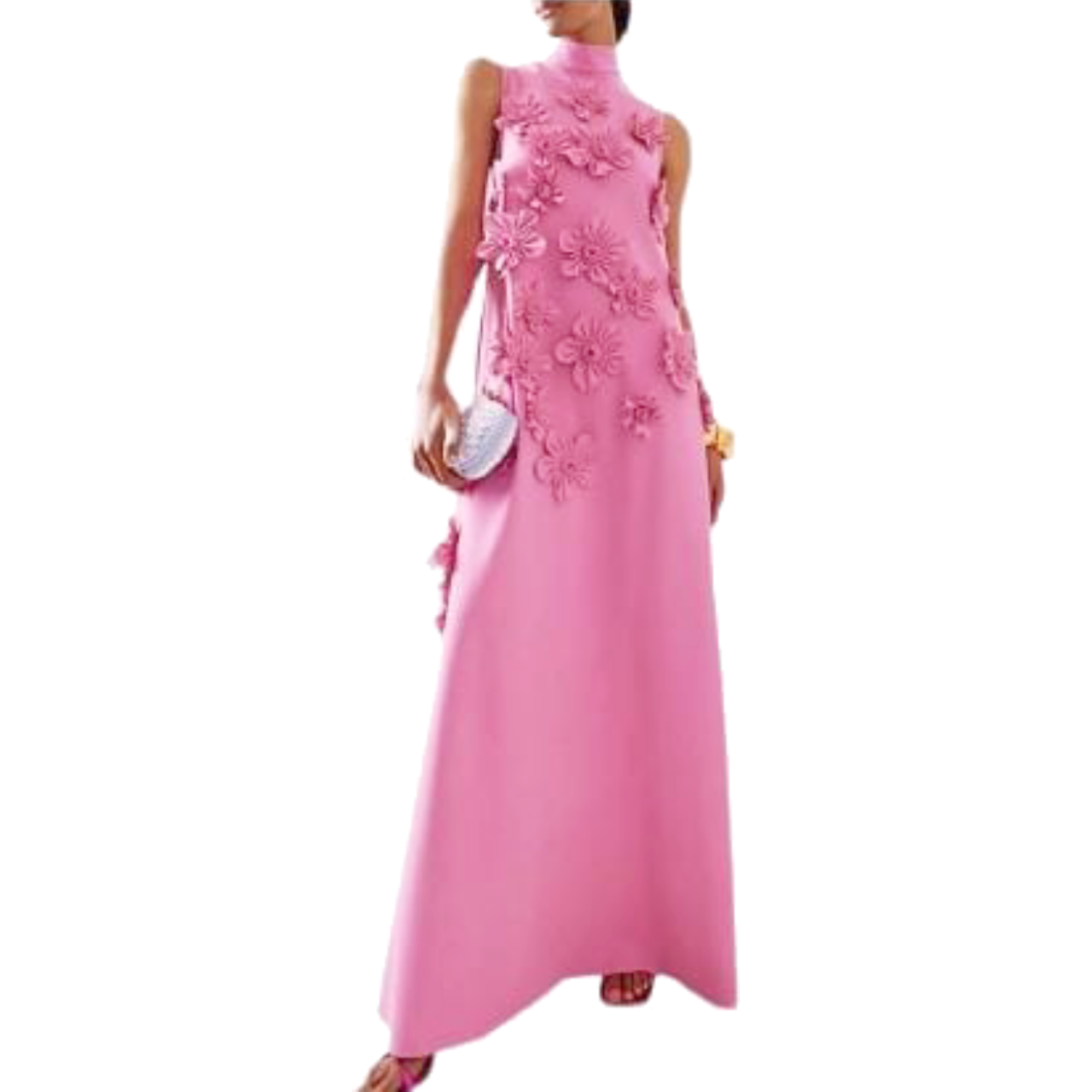 Step into elegance with this breathtaking long dress. Featuring a chic turtleneck and sleeveless design, it’s embellished with delicate flowers in the same tone for a refined, monochromatic look. The silhouette is absolutely stunning—flattering and feminine in all the right ways.