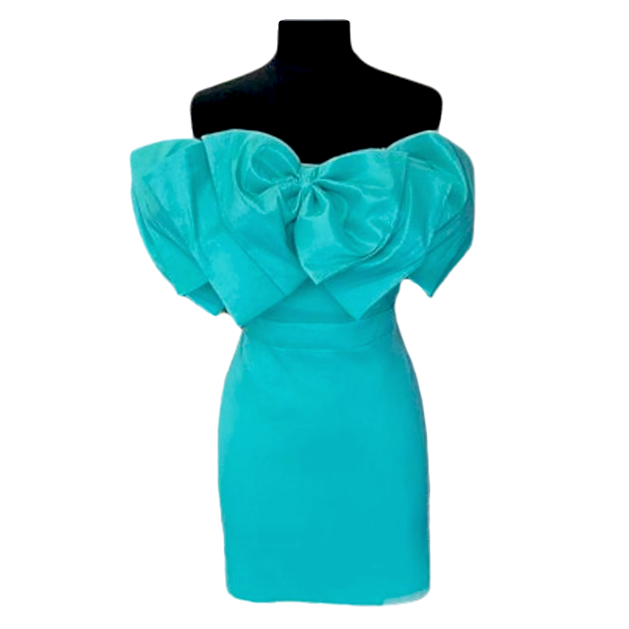 Step into the spotlight with our stunning ocean blue mini dress, designed for the daring and the chic. This slim-fit masterpiece hugs your curves perfectly, while the oversized, dramatic bow  detail in the front adds a touch of avant-garde flair. Whether you're heading to a gala or a night out, this dress promises to make a statement. Embrace the bold and beautiful in a look that's absolutely unforgettable!