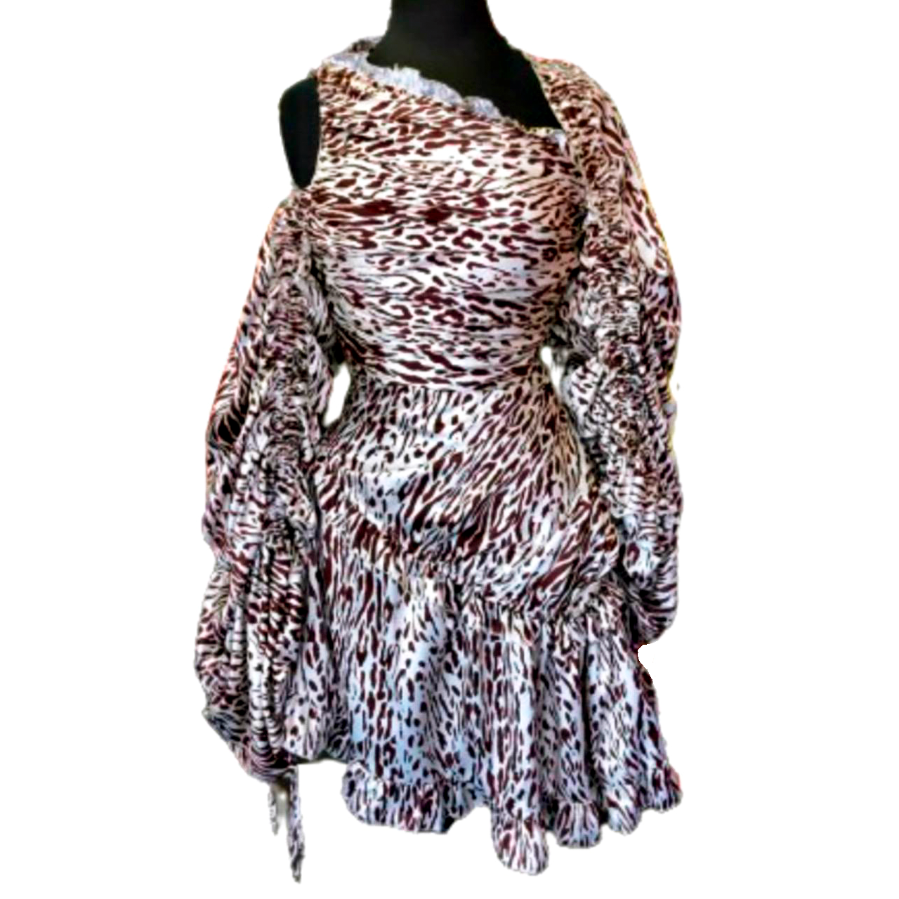 Picture a silk dress with a bold animal print that will make you stand out wherever you go. With long sleeves and a unique asymmetric design, this dress features a draped sleeve that adds an elegant and stylish touch. Crafted entirely in silk, it will make you look stunningly beautiful for any occasion.