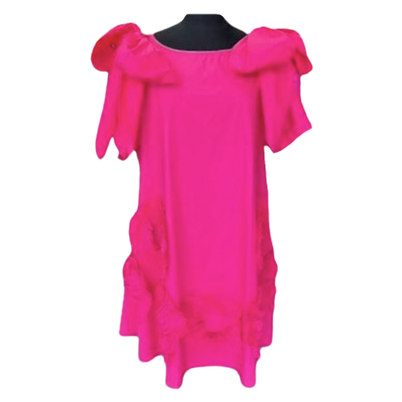 This hot pink dress is perfect for making a statement. With bows on each shoulder, it adds a cute and playful touch to the elegant design. Ideal for special occasions, the vibrant color and charming details make it a standout choice.