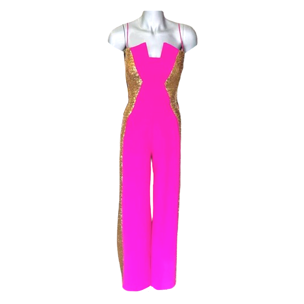 Este impresionante jersey fucsia está diseñado para llamar la atención. Presenta elegantes tirantes y brillantes lentejuelas doradas a los lados que realzan tu cintura, creando un look súper sexy y espectacular. Perfecto para cualquier ocasión especial donde quieras destacar.